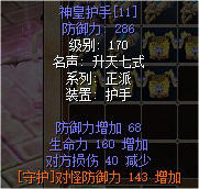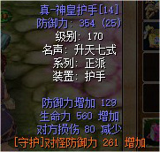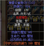 鸿轩耳环-(碎)(梅柳真) | 所有气功等级增加4,命中率20,生命力440,障力恢复量100。 |